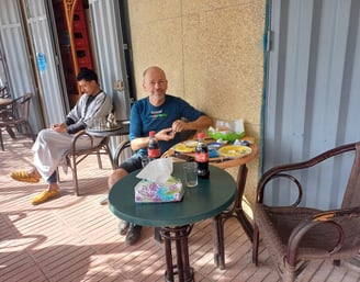 Den Nachmittag verbringen wir im Zimmer und auf der Dachterrasse, arbeiten am Blog und gehen abends wieder an der Straße zum Essen.