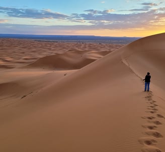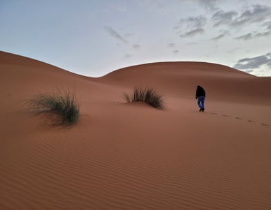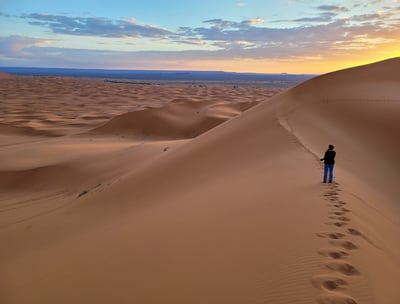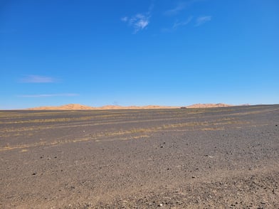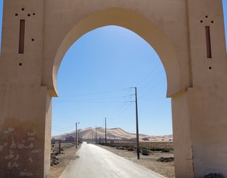 Blick zurück auf die Dünen durch das Tor von Merzouga