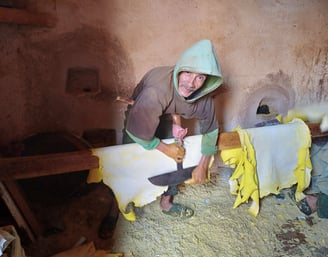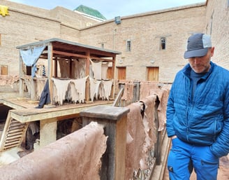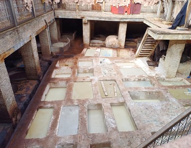 Wir besuchen die Gerbereien in Fes. Harte Arbeit, böser Gestank. Ob das Haschisch wirklich hilft?