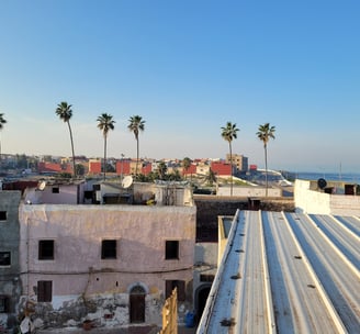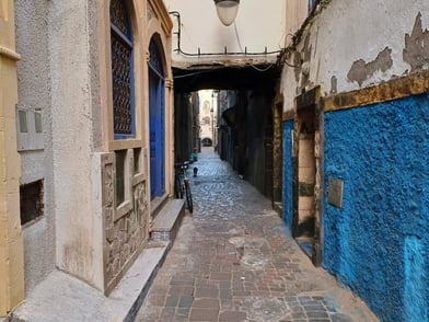 Neblige Altstadt am Morgen in El Jadida: Auf dem Weg zum Frühstück