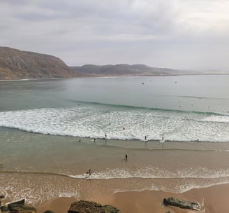 Danach geht es weiter durch das ländliche Marokko; wir passieren mehrere kleine Ort, machen noch eine kleine Pause in einem Café (in der Hoffnung, dass Cola gegen Bauchkrämpfe hilft), Dann geht es schon in den Endspurt nach Oualidia, einer kleinen schönen Stadt an einer riesigen Lagune.