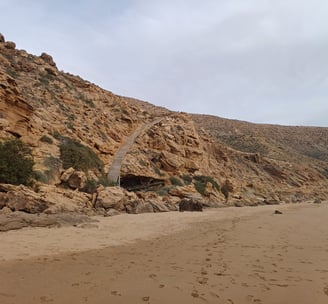 Der Fahrer fährt wie ein Henker, der Bus ist alt und die Sitze durchgesessen, wir sind deshalb froh, als wir heil in Essaouira ankommen. Unterwegs haben wir uns eine Ferienwohnung für drei Nächte gebucht. Wir können eine Pause brauchen, müssen waschen, und Conni hat sich vorgenommen, einen Surfkurs zu machen. Wir radeln zu der Wohnung, der nette Vermieter erwartet uns und erklärt uns alles, und dann machen wir uns gleich auf den Weg an den Strand. Leider zieht gleich eine Wetterstörung auf, kalter Wind bläst, und wir flüchten uns bald in die Medina. Hier ist erkennbar alles an Touristen ausgerichtet, alles ist teurer als im „echten“ Marokko. Aber wir kaufen nichts außer Minze und Bananen, dann auf dem Rückweg zur Wohnung noch diverse Lebensmittel, und machen es uns anschließend auf dem Sofa gemütlich.