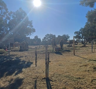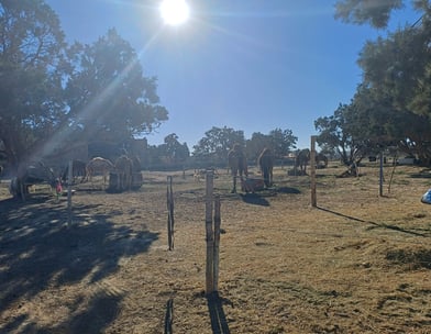 Vor dem Riad warten Kamele auf reitlustige Touristen