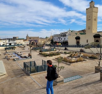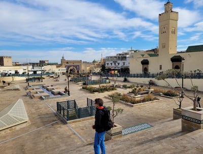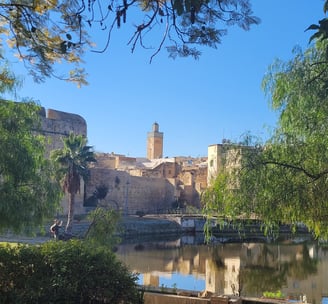 Am nächsten Morgen machen wir uns auf eine große Wanderung zum CTM-Büro, um die Weiterfahrt nach Chefchaouen klarzumachen. In einem großen Bogen über einen schönen Park und das alte jüdische Viertel sind wir einige Stunden unterwegs, nehmen dann ein Taxi bis zum Haupttor der Medina. Aber wir verlieren bald die Lust an dem Treiben, wollen lieber zurück zum Hotel und vielleicht am Abend zurückkehren, um in einem der vielen schönen Lokale zu essen. Leider wiederholt sich das Elend von gestern: wir verlieren völlig die Orientierung. Jeder Dritte bietet uns seine „Hilfe“ an, will von unserer Lage profitieren. Aber wir sind es satt, wollen diesmal selber hinausfinden, was uns endlich auch gelingt, aber erst nach einer gewaltigen Irrfahrt. Für mich steht fest: ein drittes Mal wird es nicht geben, ich geh da nicht mehr rein! Das ist wirklich schade, denn die Medina hat uns gut gefallen. Aber diese Hilflosigkeit verdirbt den Spaß völlig!
