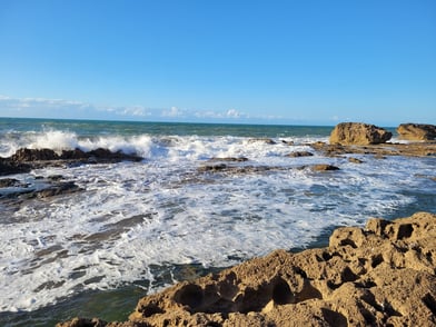 Vor El Jadida geht es mehrere Kilometer sehr schön am Meer entlang