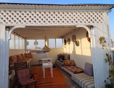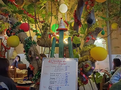 Leckeren Saft trinken, Essen mit Aussicht, nette Leute Kennenlernen (hier Yussef in seinem Laden)