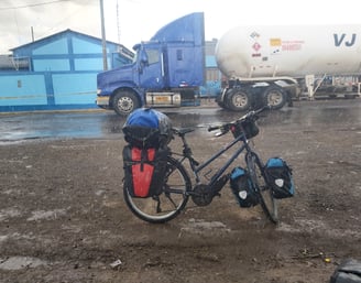 In der Nacht kann ich nicht schlafen, stundenlang quäle ich mich, bevor ich in den Morgenstunden etwas Schlaf finde. Der Plan, vor 7 Uhr aufzustehen, um früh an der Grenze zu sein, ist damit gescheitert. Als ich mich gerädert aus dem Bett quäle, ist es schon halb neun. Wir frühstücken und packen und sind dann um halb elf an der Grenze. Die gefürchtete Warteschlange dort besteht dankenswerterweise nur aus einem anderen Pärchen aus unserer Unterkunft. Nach drei Minuten sind wir schon dran, weitere drei Minuten später ist die Ausreise aus Bolivien erledigt. Wir wechseln bei einer alten Frau unsere Bolivianos in peruanische Soles um und radeln nach Peru. Auch dort geht alles blitzschnell, Fieber und Puls messen, Pässe und Impfausweise vorlegen, und schon ist es geschafft!