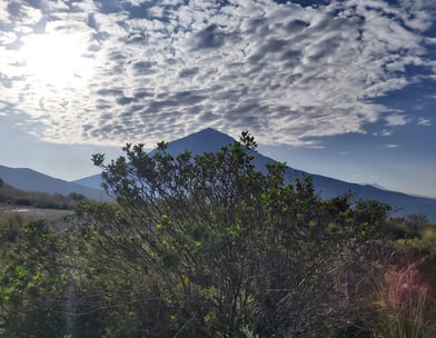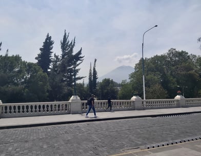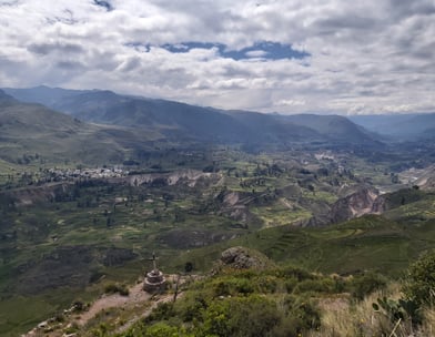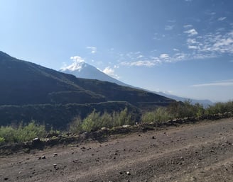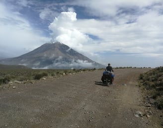 Auf dem Weg zum Colca-Canyon rauchen die Vulkane in der Ferne