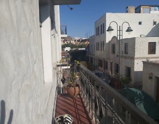 Blick von unserem ersten Balkon. Hier bleiben wir nur eine Nacht.