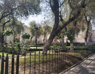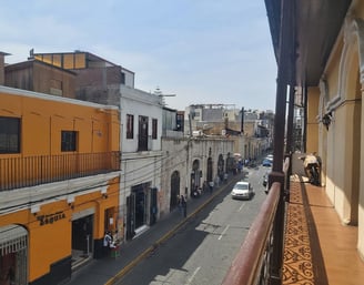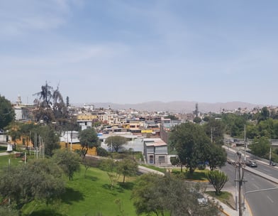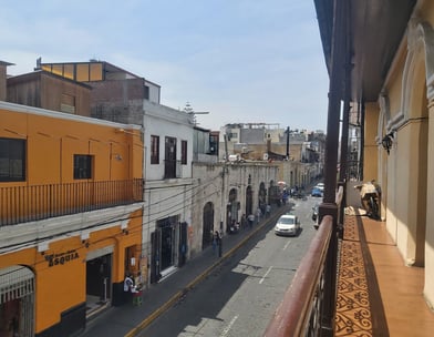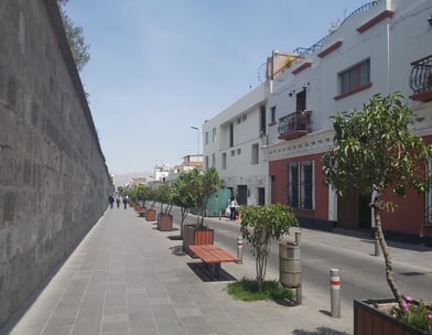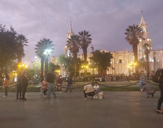 Es geht dann noch fast 20km bergab, bis wir die Plaza de Armas von Arequipa erreichen. Hier ist alles so zivilisiert und bürgerlich, dass man die traurige Wirklichkeit der Abfahrt fast vergessen könnte. Wir suchen und finden eine schöne und günstige Unterkunft, die aber leider kein WLAN hat. Da wir dies aber für die Planung der Weiterreise unbedingt brauchen, suchen wir uns ein anderes Quartier, in das wir morgen umziehen werden. Wir machen uns dann zu Fuß auf in die Straße der Fahrradgeschäfte. Bald haben wir zwei Radkartons gefunden, die zu unseren Rädern passen, und schleppen sie in die neue Unterkunft, in der wir die restlichen fünf Tage bleiben wollen. Im Anschluss gönnen wir uns in der Happy Hour ein paar Drinks, bevor wir am Abend in einem Straßenlokal das WM-Qualifikationsspiel Peru gegen Paraguay anschauen, das Peru souverän gewinnt. Eine Runde über die Plaza de Armas mit feiernden PeruaerInnen beschließt den Tag.