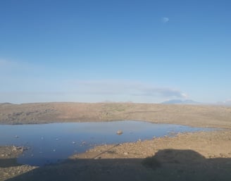 Aussichtspunkt zum See: hier genießen wir die letzten Sonnenstrahlen des Tages. Danach wird es sehr kalt!