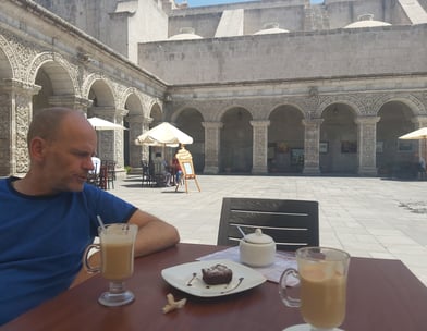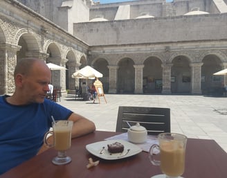 In Arequipa beginnt eine Zeit der emsigen (Flug-)Reisevorbereitung: Die Räder werden zerlegt und in die Kartons verpackt, Sachen aussortiert, die wir nicht weiter mitnehmen wollen (z.B. ausgelesene Bücher, angebrochene Lebensmittel) oder dürfen (Brennspiritus), letzte Andenken werden gekauft, alles umgepackt in große Gebinde. Daneben bleibt noch genug Zeit für lange Stadtspaziergänge mit vielen Einkehrten in nette Cafés und Restaurants. Das Preisniveau erinnert an Europa, wahrscheinlich, um uns auf den Preisschock dort vorzubereiten.