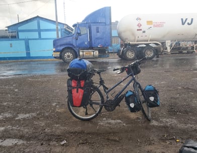 Soweit klappt alles. Allerdings braucht der Bus dann statt drei gute vier Stunden, währenddessen regnet es immer wieder. Kurz nach 14 Uhr haben wir unser Zeug dann erfolgreich aus dem Bus ausgeladen. Damit bleiben uns nur noch knapp vier Stunden, bis es Nacht wird. Während ich die Räder abfahrtsbereit mache und belade, kauft Conni noch Lebensmittel ein. Sie kommt zurück mit der Nachricht, dass es im Ort auch mehrere Hospedajes gibt. Quasi im selben Moment setzt ein heftiger Gewitterregen ein, der zwischendurch in Hagel übergeht. Wir stehen unter einem kleinen Vordach, warten und frieren, und ziemlich schnell ist uns klar, dass wir heute nicht mehr weiterfahren werden. Die nächsten 30km liegen auf über 4.400m, es gibt nichts, das Schutz gegen Regen und Gewitter bieten würde, und selbst wenn es nicht mehr weiter regnen würde, müssten wir unser Zelt auf der Hochebene aufstellen und hätten eine eher miese Nacht vor uns.