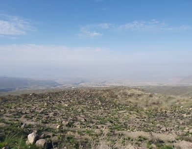 Vor unserer Unterkunft: Ganz hinten sieht man schneebedeckte Berge