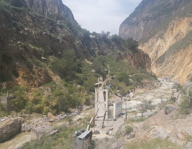Wir sind schon sieben Stunden unterwegs und reichlich platt, als wir nach 72km den Beginn der Abfahrt nach Arequipa erreichen. Jetzt sind es noch gute 40km bis ans Ziel in Arequipa, und wir haben noch knapp vier Stunden Tageslicht. Da wir kaum noch Wasser haben, hoffen wir, es bis dort zu schaffen. Aber ein Gegenanstieg von 4km (für den wir 45 Minuten brauchen) und der Zustand der Strecke machen uns einen Strich durch diese Rechnung. Selbst als es wirklich nur noch bergab geht, kommen wir kaum voran. Voll konzentriert in den Pedalen stehend, zirkeln wir um Löcher, tiefe Wasserrinnen und große Steine herum.