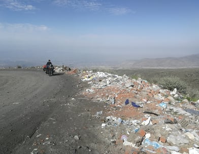 Nach gut 12 Stunden Schlaf weckt uns ein Rudel Hunde, die um unser Zelt einen Kampf austragen. Wir verscheuchen sie, kochen uns mit dem letzten Wasser einen Tee, essen das letzte Brot mit den letzten Bananen, packen in aller Ruhe unsere Sachen zusammen und rollen dann ohne Zeitdruck die letzten 3,5km Schotter hinunter. Dann folgen noch ein paar Kilometer in Stille und Einsamkeit, bevor auf etwa 3.000m die ersten Ausläufer der Stadt beginnen. Aber schon vorher wuchert am Straßenrand der Müll. Es ist absolut niederschmetternd, in welchem Ausmaß die Peruaner ihr Land mit Müll aller Art verschandeln. Wir haben das in allen vier Ländern erlebt und errochen, aber Peru, zumindest der kleine Teil, den wir bereist haben, markiert einen traurigen Höhepunkt.