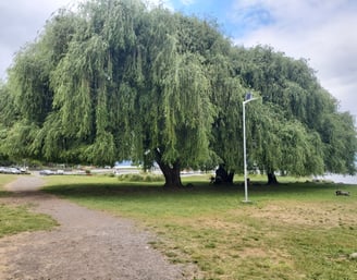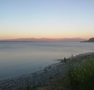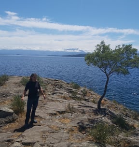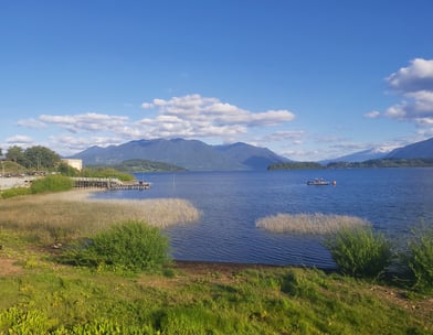 Wir wandern stundenlang am Ufer entlang und genießen den Anblick von Bergen, Wasser und den Tausenden Vögeln, die sich hier rumtreiben. Auf dem Wasser, am Ufer im Gras, auf den Bäumen: überall wimmelt es von unterschiedlichsten Vogelarten aller Größen.