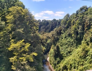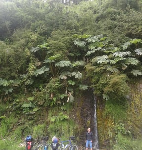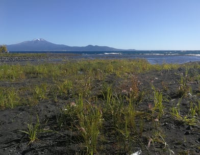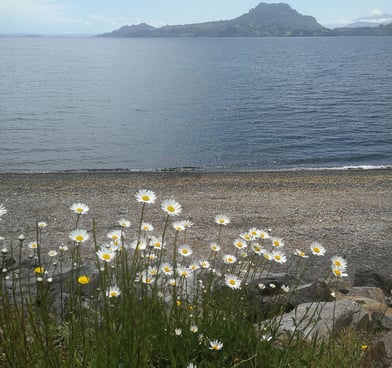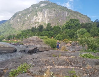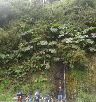 Aufgebrochen sind wir Ende Oktober in der Zentralzone in Chile, wo es sehr warm ist. Inzwischen sind wir weit im Süden, und die Vegetation hat sich schleichend immer weiter verändert. Zu Beginn waren die Kakteen die dominierende Pflanze, inzwischen sind sie fast vollständig verschwunden, es tauchen immer mehr Farne und rhabarberähnliche Nalca-Pflanzen mit Riesenblättern auf. Die Landschaft wird grüner, feuchter, wilder. Die anfänglichen Obstplantagen weichen Schafsweiden und Urwäldern. Überall gibt es jetzt sprudelnde Bäche, wo wir die ersten Wochen nur ausgetrocknete Betten gesehen haben. Ab nächster Woche sind wir auf der Carretera Austral im Regenwald angekommen.