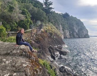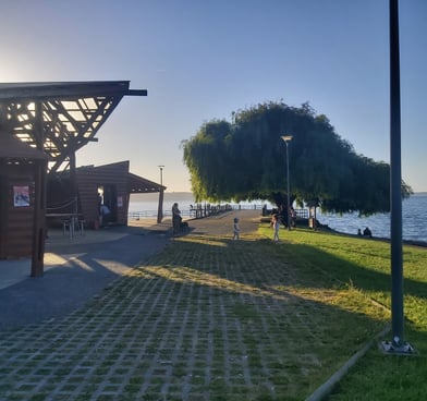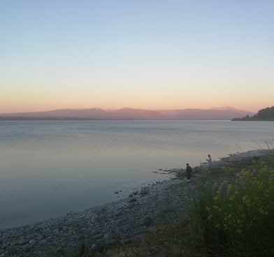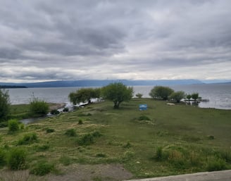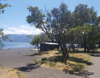 Zum Glück ist der Ort wunderschön! Wir finden die schönste Cabana, die wir bisher hatten, und die uns richtig glücklich macht, groß, gemütlich, mit viel Licht, Seeblick, einem schönen Garten und einer liebenswerten alten Dame als Wirtin. Conni kauft fett ein, wir machen einen langen Abendspaziergang, und dann reicht die Kraft nur noch für einen Palta(=Avocado)salat und Rotwein.