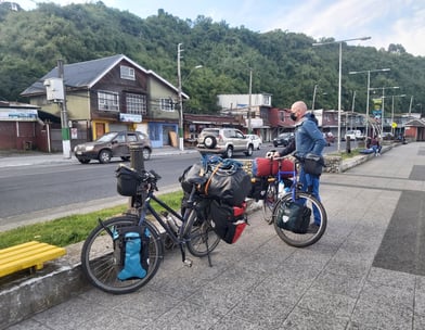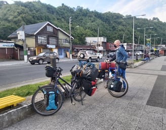 Da unsere Wirtin in der Früh nach Osorno ins Krankenhaus muss, brechen wir früh auf. Es ist bedeckt und windstill, was uns nach gestern sehr freut. Gleich hinter dem Ort steigt die Straße in kurzen Wellen an. Aber unsere Form passt immer noch, wir kommen gut voran. Und die Landschaft begeistert uns und treibt uns an. Es wird immer wilder, immer grüner, und im Hintergrund blitzt immer wieder der Vulkan durch. Als wir nach 20km in Ensenada ankommen, sind wir total aufgekratzt, würden am Liebsten bleiben, den Osorno besteigen oder in die Berge hineinradeln. Wir trinken an der Straße Kaffee und diskutieren unsere Optionen. Dann fahren wir weiter, checken aber immer wieder Cabanas und Hostels aus. Aber es soll einfach nicht sein! Es findet sich nichts Passendes, wo wir jetzt am Vormittag schon einchecken könnten und Wäsche waschen sowie online gehen könnten. Also fahren wir weiter und planen, nach Puerto Montt durchzufahren.