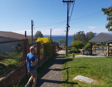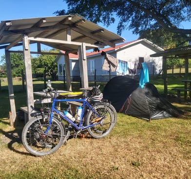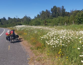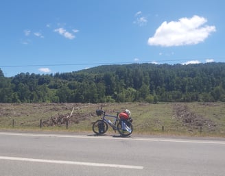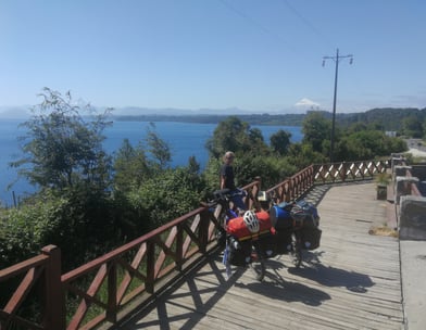 Es folgen 19km mit 434HM, aufgeteilt auf 24 Anstiege und Abfahrten, nichts davon unter 10%. Mit jeweils gut 30kg Gepäck auf dem Rad heißt das, dass jeder Meter bergauf im 1. Gang gefahren wird und jede einzelne Kurbelumdrehung Überwindung kostet. Gefühlt folgen auf 3 Minuten bergauf 10 Sekunden Abfahrt, immer und immer wieder. Auf halber Strecke dann ein großer Anstieg über knapp 2km, für den wir 26 Minuten brauchen. Als wir endlich Lago Ranco erreichen ist klar: wir haben große Lust auf nicht nur einen, sondern mindestens zwei Ruhetage. Das war einfach zu viel!