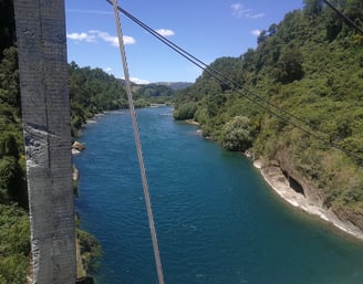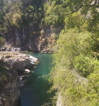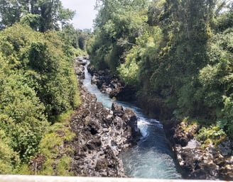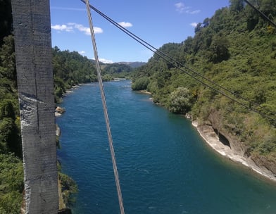 Es ist schon fast Mittag, als wir bei strahlendem Sonnenschein losfahren, und entsprechend hart werden die ersten 3,5km, die uns aus dem Ort und 140HM bergauf führen. Der restliche Weg ist aber gut zu fahren, wenn auch ein Wenig eintönig, mit Ausnahme der Querung des Rio Calle-Calle, die zwischen einer Abfahrt von 200HM und einem steilen Aufstieg von 70HM spektakulär schön ist!