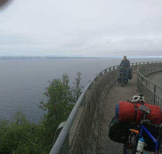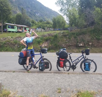 Was für ein Spaß! Wir sind kurz nach sechs wach, der Himmel über dem See ist wolkenlos blau, wir packen und frühstücken und sind vor acht unterwegs. Der erste große Anstieg nach nur 5km geht noch recht zäh , aber dann laufen die Kilometer einfach so durch. Abseits des Sees ist es dicht bewölkt und kalt, auch deshalb treten wir kräftig in die Pedale. Aber drei Ruhetage zeigen Wirkung. Wir fühlen uns frisch und stark, haben Lust auf die Anstrengung!