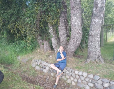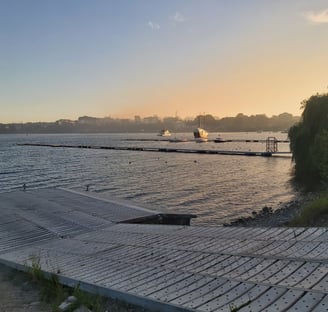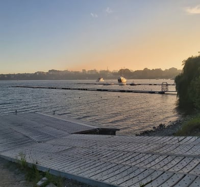 Da wir vor 14 Uhr ankommen und nicht verschwitzt oder dreckig sind, beschließen wir, dass heute der ideale Tag ist, um mit dem Zelten zu beginnen. Wir finden einen hübschen Platz direkt am See. Nachdem wir uns eingerichtet haben, gehen wir in den Ort zum Essen und Einkaufen, und den restlichen Nachmittag verbringen wir mit Tee trinken, Kuchen essen und baden. Am Abend gibt es ein Feuerchen.