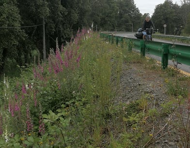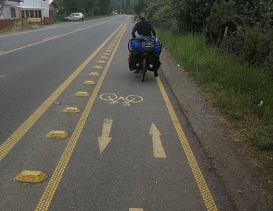 es gibt einen 40 km langen Radweg: Mal endet er an Brücken, dann wieder haber wir sogar eine Extraspur für uns!