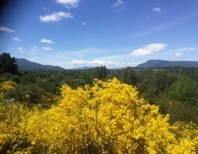 Die Anden sind hier nicht so hoch und sehr grün: Blick in Richtung Argentinien