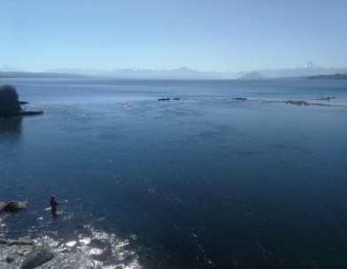 Der Lago LLanquihue ist einer der größten Seen Chiles und hat heute mehr Wellen zu bieten als die Adria an mittleren Tagen. Wir mitten uns im recht nichtssagenden Stranddörflein Las Cascadas eine nette Cabana und lassen den Tag mit Strandwandern, Kochen und einer Flasche Wein ausklingen.