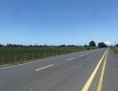 Es geht den weiteren Tag durch eine Kulisse, die sehr ans Alpenvorland erinnert: Berge, vereinzelt schneebedeckt, dazu Seen, Kühe, Lamas. Wir haben Tee und Honigbrote eingepackt und lassen es uns schmecken mit Aussicht. Ich habe trotzdem noch Hunger und bestelle mir am Stand am Straßenrand Pommes. Die dauern so sagenhaft lange, dass der Daniel eine mittlere Krise erleidet, schmecken dafür aber sehr lecker.
