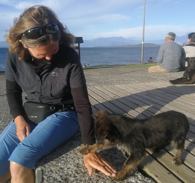 Mit den Wochen sind wir zwar stärker, aber zugleich eher langsamer geworden. Haben wir zunächst unser „Programm“ abgespult, so tauchen wir mit den Wochen immer tiefer in die Lebenswelt um uns ein. Spontan bleiben wir an Orten, die uns anlachen. Nach fünf Wochen „auf der Straße“ wird auch der Wunsch, anzukommen, spürbar stärker. Gespräche werden länger, mitunter persönlicher. Das kann dann dazu führen, dass wir Mühe haben, wieder aufzubrechen. Unsere Art des Reisens ist letztlich eine dauernde Folge von Abschieden und Ankünften. Mit jedem Aufbruch in der Früh müssen wir uns losreißen, mit jeder Ankunft müssen wir uns einlassen auf einen neuen Mikrokosmos. Manchmal ist dann der Wunsch, zu bleiben, so stark wie hier am Lago Ranco.