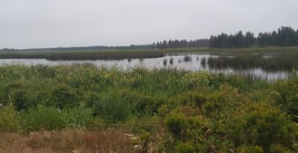 Lagunen mit vielen Wasservögeln an Dünenlandschaft