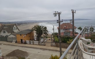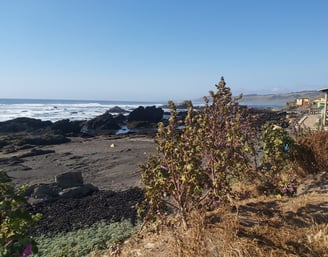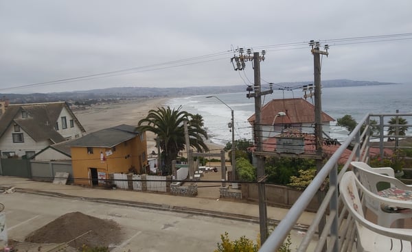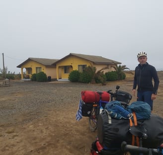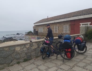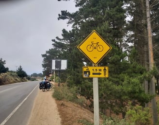 Unsere Straße macht schließlich am Fuße der gefürchteten langen Steigung eine Wende von mehr als 90 Grad Richtung Meer, und plötzlich bläst uns der Wind den Berg rauf! Das fühlt sich schon besser an! Mit Hilfe des Rückenwindes ist der letzte Berg dann zwar schweißtreibend aber machbar und beim anschließenden Bergabrollen freuen wir uns schon auf einen Pausentag in Pichilemu, wo wir in einem schönen kleinen Hotel unterkommen.