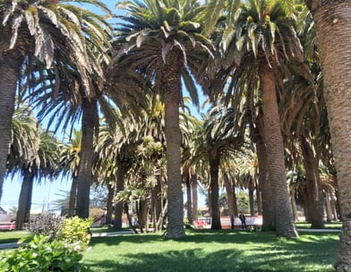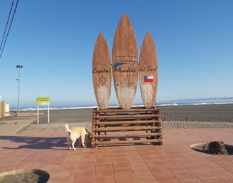 Eine gute Idee! Beim Schlendern durch die Straßen haben wir immer wieder einen super Blick auf das Meer und die Wellen, die nicht nur auf Surfer durchaus einladend wirken. Es gibt einen schönen kleinen Park mit gepflegtem Palmenschatten, 1000 kleine Läden mit allem, was das Touristenherz begehrt, von Streetfood, Süßwaren bis hin zu allerlei Tand. Auch Nützliches finden wir hier, zum Beispiel die dringend benötigte Wäscherei, einen gutsortierten Supermarkt, in dem ich unseren Lebensmittelvorrat aufstocke, und einem Fahrradladen. Wir finden gleich unser Lieblingscafé, in dem es wirklich tollen Schokoladenvulkan zum cafe del grano, also Bohnenkaffee, gibt. Überhaupt gibt es in diesem Land so dermaßene Unmengen an leckerstem Gebäck, dass mich der durchschnittliche Körperumfang der Chilenen gleich viel weniger wundert.