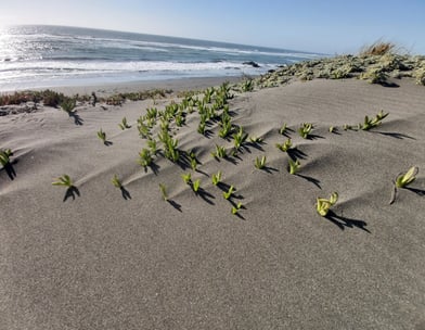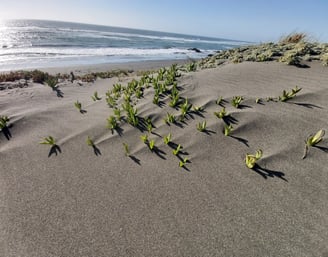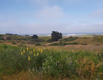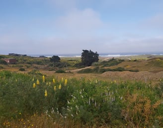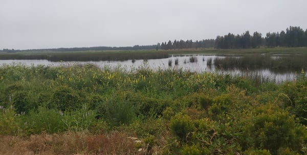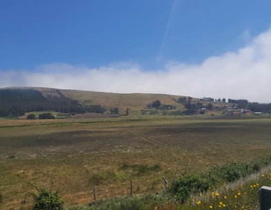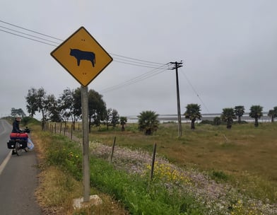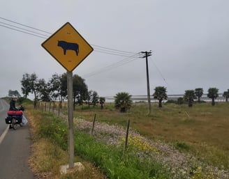 Weiter geht’s durch relativ flaches Gebiet mit Blumenmeeren, kleinen Bauernhöfen, vorbei an Kühen und Schafen. Schon einen km nach Bucalemu ist die Sonne wieder da. Es ist wie verhext. Erinnert mich an die Nebelqualle in „Rumo“ (von Walter Moers).