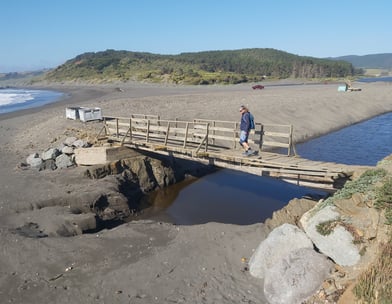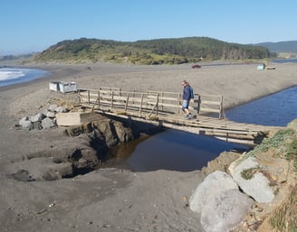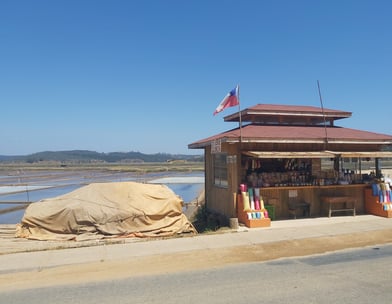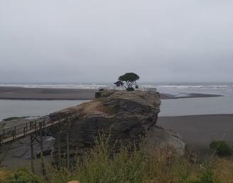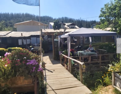 Nach einigem Auf und dann einem gewaltigen Ab gelangen wir nach Bucalemu, einem sehr netten Dorf am Meer, wo wir leckeren Fisch zum Mittagessen bekommen. Leider ist hier wieder der Nebel und es ist dermaßen eiskalt, dass ich mich schon auf die nächste Steigung freue.