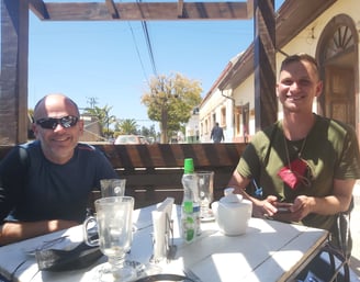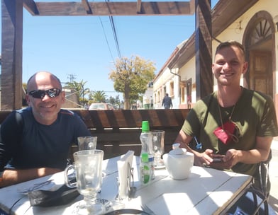 Im Cafe treffen wir auf Martin aus Dresden, der mit dem Motorrad hier ist