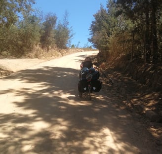 Heute ist es dann soweit: Um weiter dem Meer folgen zu können, muss ein Bergrücken überquert werden, der nicht nur sehr hoch und steil ist, sondern auch nur auf Dreckstraßen überquert werden kann. Noch in Deutschland waren wir die Strecke immer wieder mit dem Googleauto abgefahren und hatten diskutiert, ob wir das schaffen können und wollen. Conni war stets für „will ich und kann ich“, während ich auf der Seite „kann ich vielleicht, will ich aber nicht“ stand. Als die Etappe nun näher kam und wir konkrete Erfahrung mit Steigungen über 10% gesammelt hatten, war auch Conni plötzlich nicht mehr ganz so sicher, ob sie das wirklich können würde. Schließlich einigten wir uns darauf, in zwei statt einem Tag von Pichilemu nach Lipimavida zu radeln und die Strecke so umzuplanen, dass wir auf der entscheidenden Etappe nur noch knapp 1.000HM haben würden.