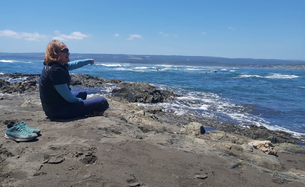 Es macht auch großen Spaß, einfach nur den Möwen und den Pelikanen beim Fliegen und Schwimmen zuzuschauen. Das Wetter ist fast nur strahlend sonnig, es weht aber ein kalter Wind, so dass wir langärmlig und mit dicken Westen unterwegs sind, was mich aber kein bisschen stört, spart Sonnencreme!